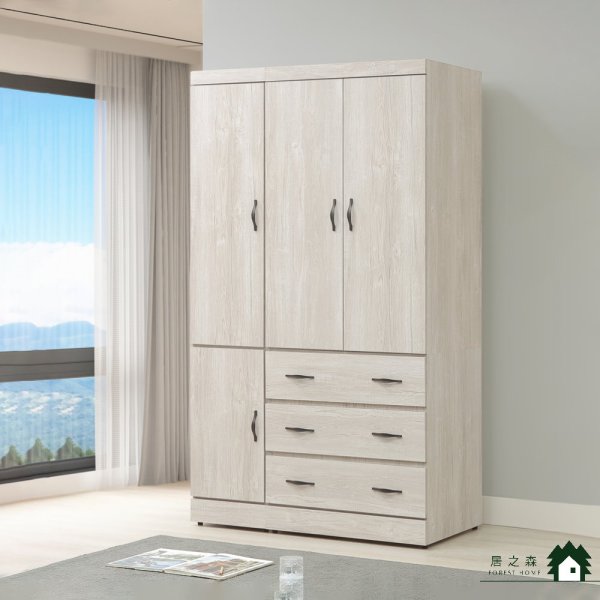 ◇全木心板正面PVC防水耐磨 側板木紋浮雕耐磨壓紋 ◇門片緩衝油壓鉸鍊 滾輪式滑軌 內附吊桿兩支 內附鏡面 ◇表面木紋細緻搭配時尚冰島白橡(白橡、原切、原切白)色